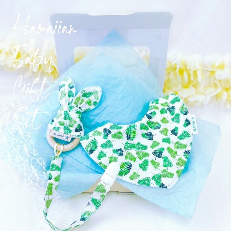 名入れ 海を感じる ベビーギフト3点セット トロピカル柄/ 海 ハワイ 夏 出産祝い ベビーギフト