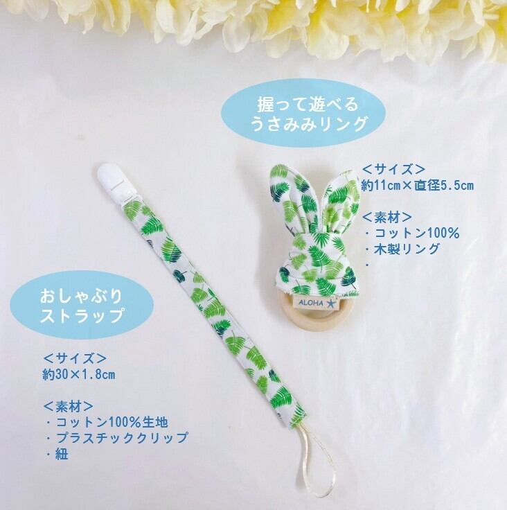 握って遊べるうさみみリングは、スタイと同じ生地ですので