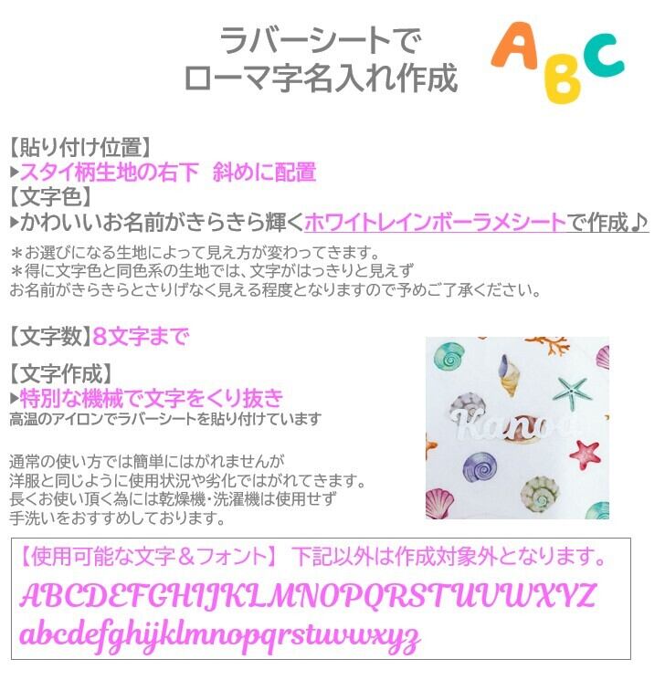 スタイにかわいいお名前をきらきら輝くホワイトレインボーラメシートで作成いたします。ローマ字8文字まで入力してください。頭文字のも大文字で作成となります。
