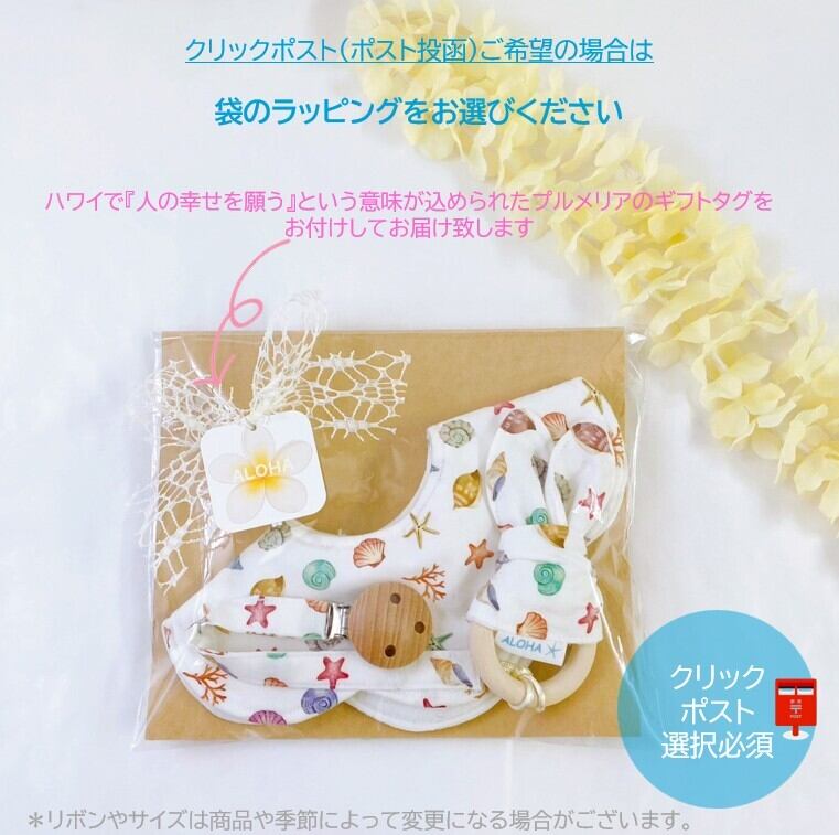 『人の幸せを願う』いう意味が込められたハワイアンモチーフのプルメリア柄ギフトタグをお付けしてお届け致します。